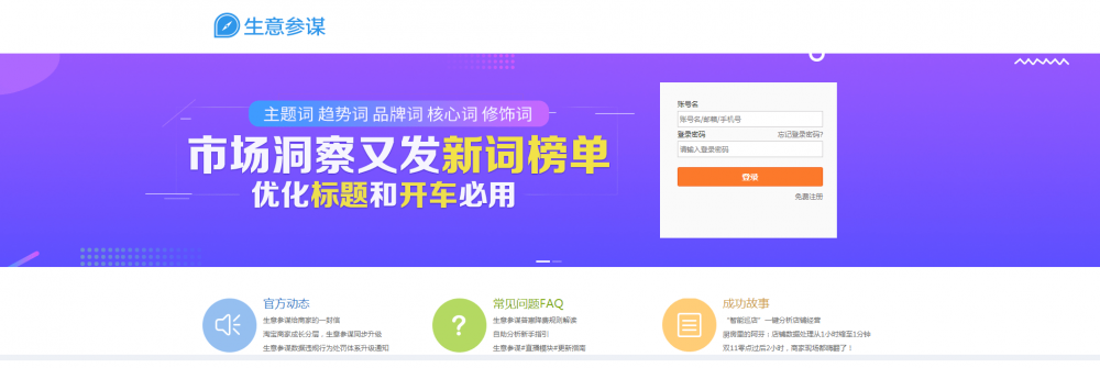 生意参谋属于数据分析统计软件,功能繁多,是店铺运营过程中每日都要接触的淘宝官方软件,可以说是淘宝数据化运营的核心。涵盖市场行情、实时直播、流量分析、商品分析、交易分析,多维度的店铺指标,科学地数据化指导您每日的运营。