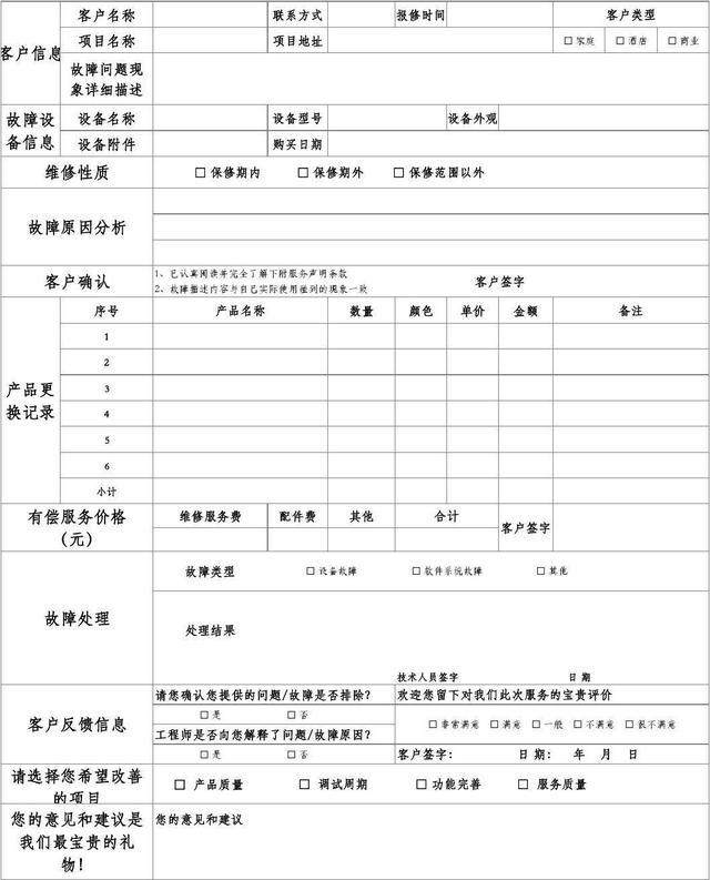 目前一些企业为了便于管理售后外勤人员的服务情况,会使用纸质工单表来记录相关的信息,便于管理者了解售后服务人员工作情况。一旦出现客户投诉后,可以快速回顾当时的情况,明确责任主体,找出解决方案。