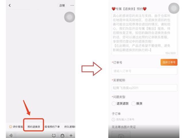 受疫情影响的消费者可登记退换货工单,预约服务,等疫情结束后,消费者可按照预约进行退换,提高售后服务体验,减少消费者下单顾虑。
