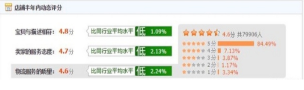 试想一下,比如您是买家,看中店铺一款产品,宝贝描述很精致,图片拍摄也很诱人,本打算在这个店铺购物却发现店铺的的动态评分宝贝描述一项是绿色,低于行业平均标准。此时心里不禁咯噔一下,犹豫再三,不敢购买。反之如果看到店铺评分红色飘飘,高于同行,便会义无反顾,立即拍下付款。可见,评分不仅反映了买家的一种购物体验,而且还影响到了卖家销售的转化率。