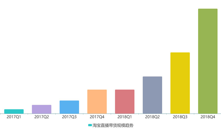 作为直播电商的开创者之一,淘宝直播的带货能力是毋庸置疑的,2018年直播平台带货达千亿级别。并且淘宝直播的业务呈现出极强的爆发性,2018第四季度的带货同比增速接近400%。