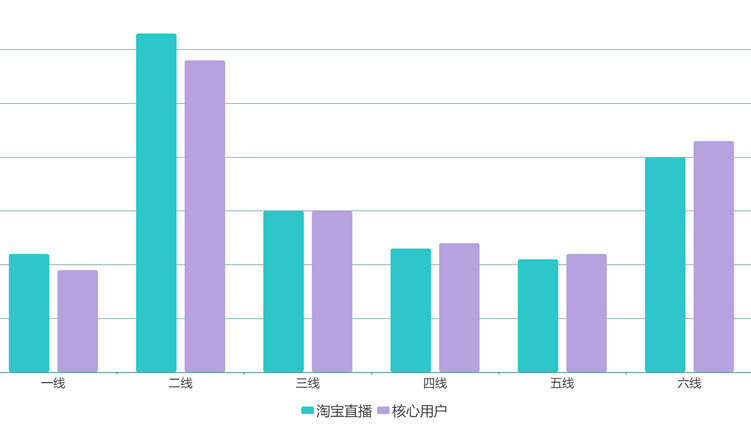 从淘宝直播的用户城市分布来看,淘宝直播在一二线城市最受欢迎,五六线城市的核心用户占比更高。而淘宝直播核心用户的超级会员占比很高,证明这些用户都是资深淘宝剁手党。