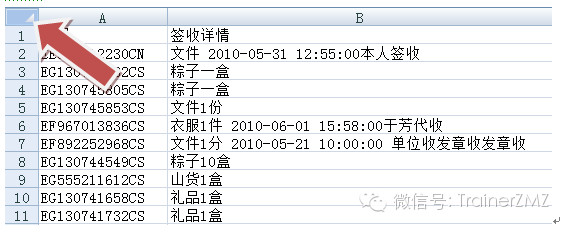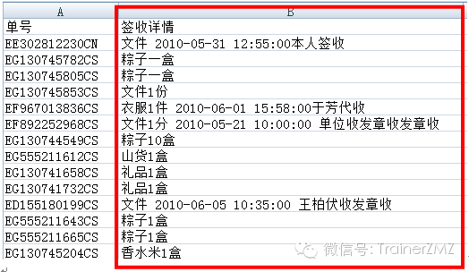 好四个条件都满足了,然后敲击键盘上的回车键,您就会发现第一个EF527973794CS对应的签收详情就导过来了。