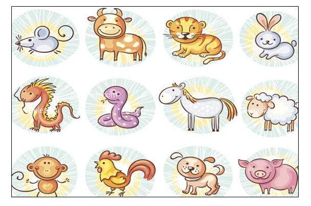 十二生肖排序表图:鼠/牛/虎/兔/龙/蛇/马/羊/猴/鸡/狗/猪