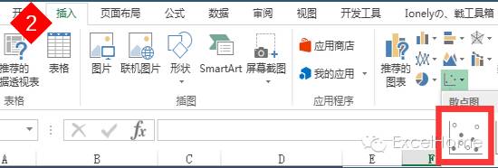 (2)新建空白图表【插入】【选择散点图】。