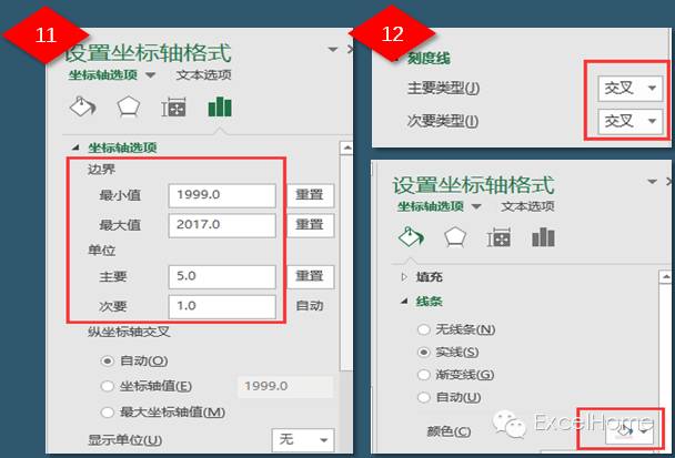(9)选择水平坐标轴,右键【设置坐标轴格式】更改值,如图11所示。