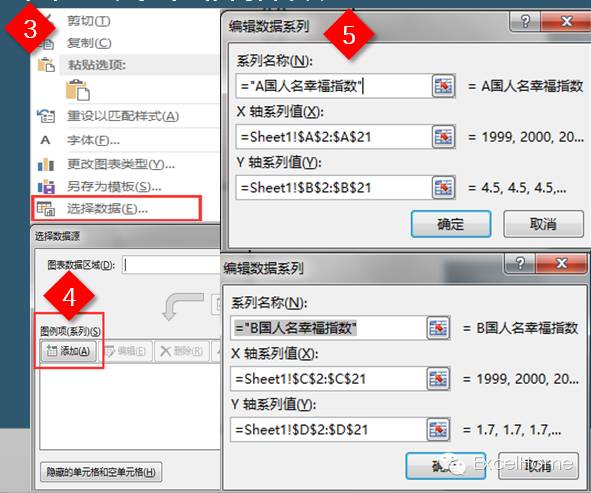 (3)在绘图区内右键【选择数据】【添加】编辑数据系列。