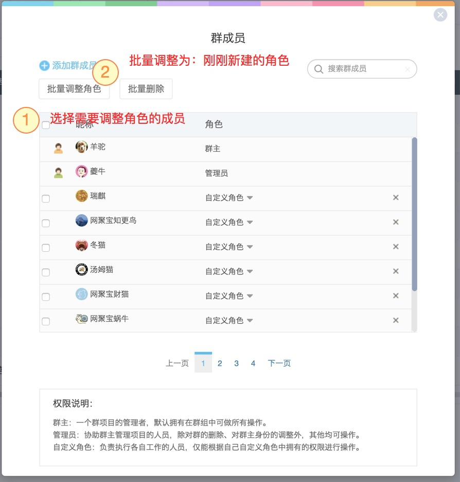 第二步:赋予成员权限:成员管理》选择成员》调整角色