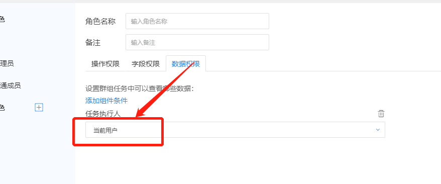 - 新建角色/修改角色权限 》设置:数据权限 - 任务执行人或创建人 - 选择当前用户; 》保存角色