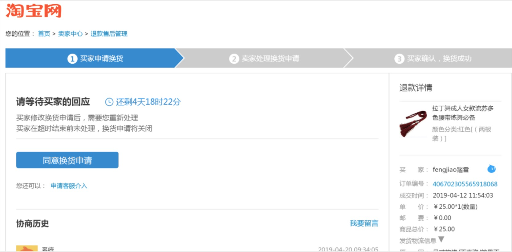 操作步骤: 点击“去处理”按钮后直接跳转到淘宝后台退款或者换货页面,如果已经退款则可以查看详情