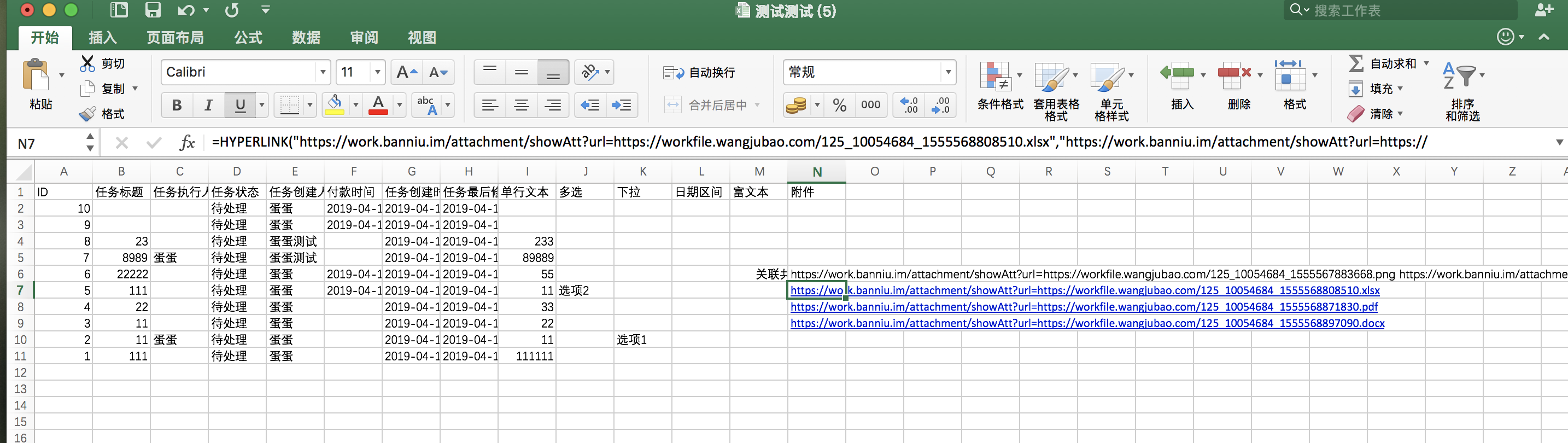 2, 点击Excel中附件字段即可预览文件。