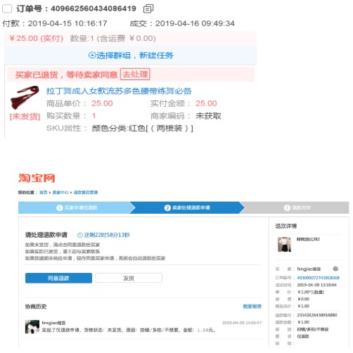 操作步骤: 点击“去处理”按钮后直接跳转到淘宝后台退款页面