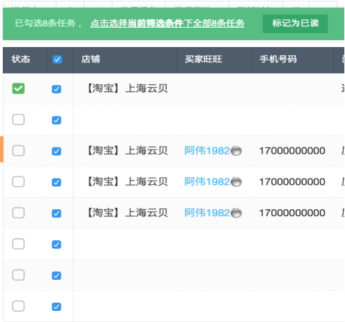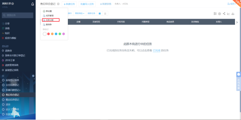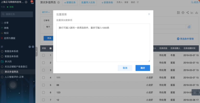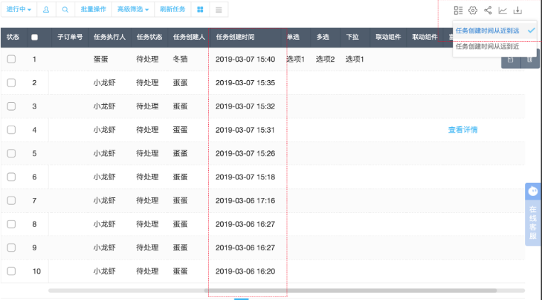 优先级,单选,多选,下拉,联动,执行人,任务状态,店铺,评分均支持多值筛选