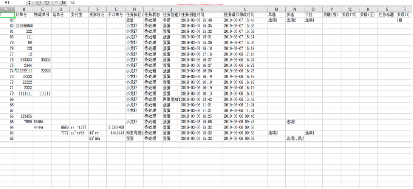 导出任务列表-看导出文件里的“任务创建时间”是否一致