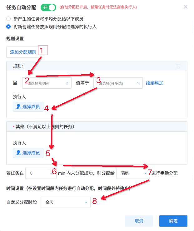 导入新增/更新任务数据,系统自动按规则分配执行人;