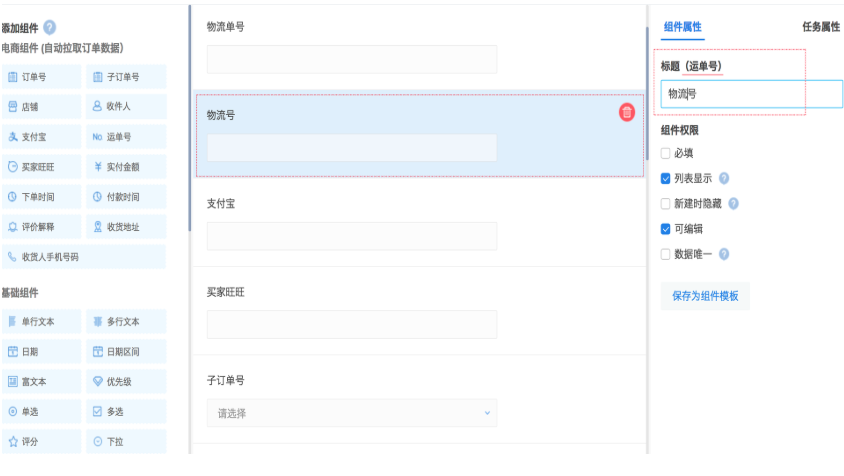 如下截图:当改“运单号”,为“物流号”时,标题旁依旧可以清楚知道原来此组件叫“运单号”