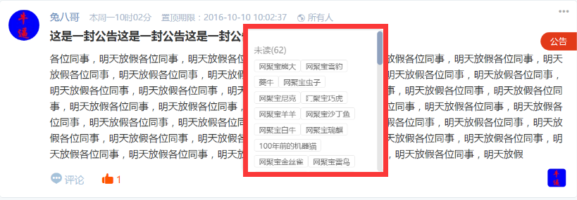 1、全新公告功能,置顶显示,活动通知全员知晓