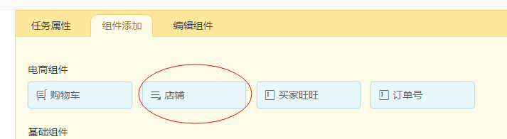 2、在电商组件的列上,找到“店铺”组件