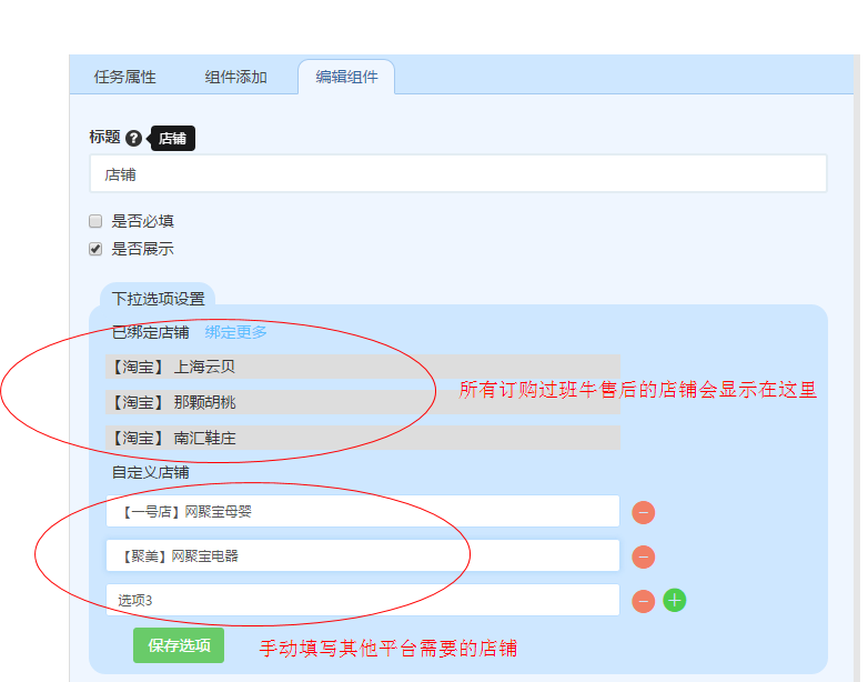 之前店铺组件只能显示或选择已绑定的店铺,现在可以手动加入除淘系和京东之外的店铺,用起来方便快捷,省时省力。如果之前您使用了“下拉项”组件来填写店铺,现在可以考虑直接用“店铺”组件哦,但是删除旧组件会导致那一列的数据丢失且无法找回。