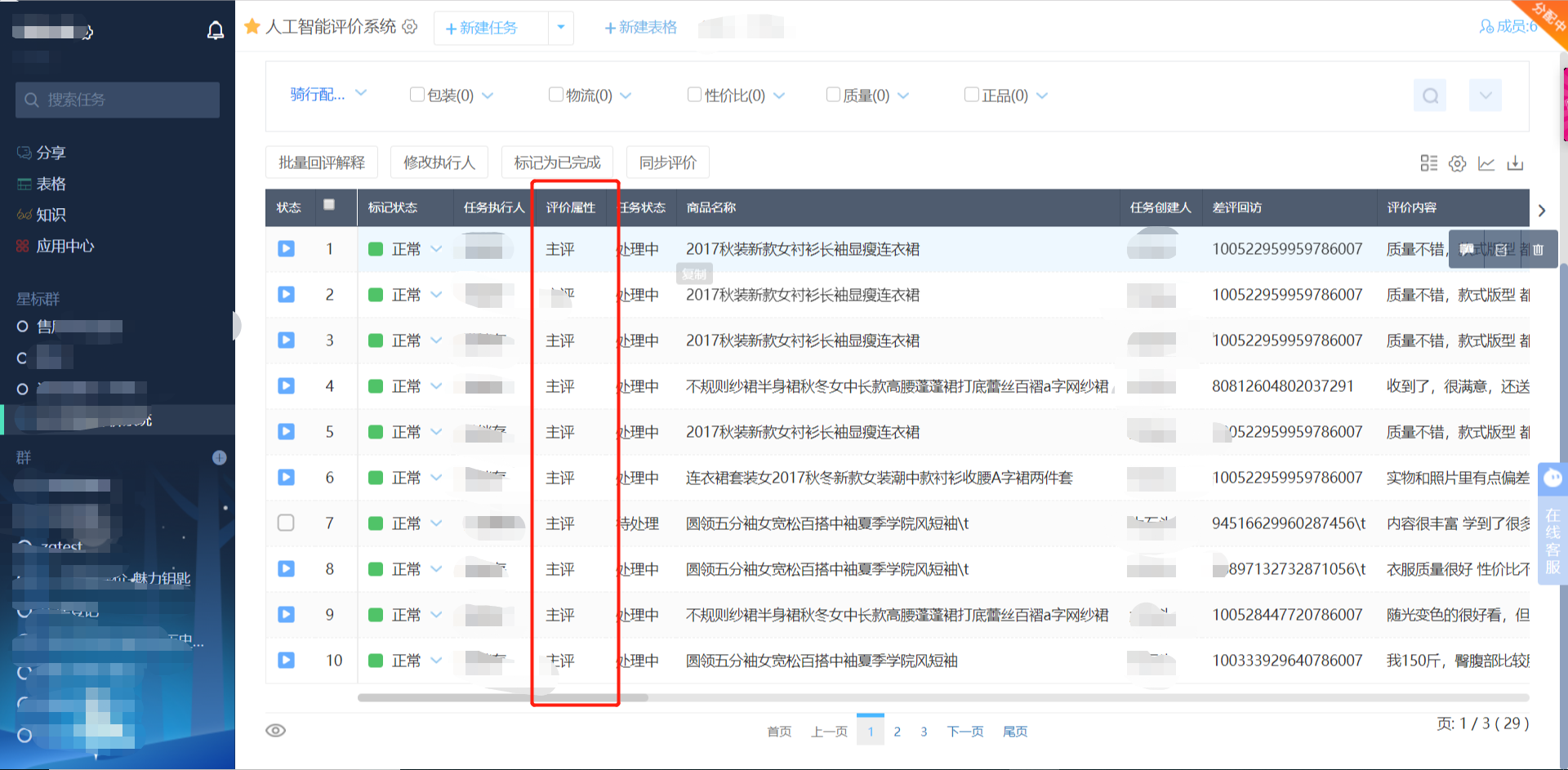 人工智能评价中新增追评数据自动获取及分析,通过评价属性进行区分:主评,追评