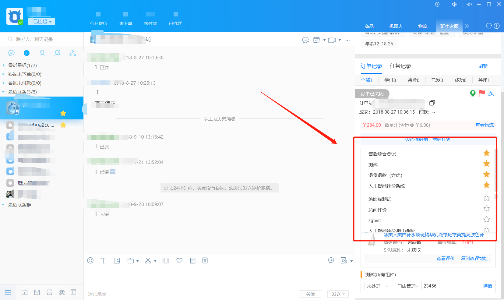 千牛插件中同步群组的星标操作,可实现常用群组的快速操作