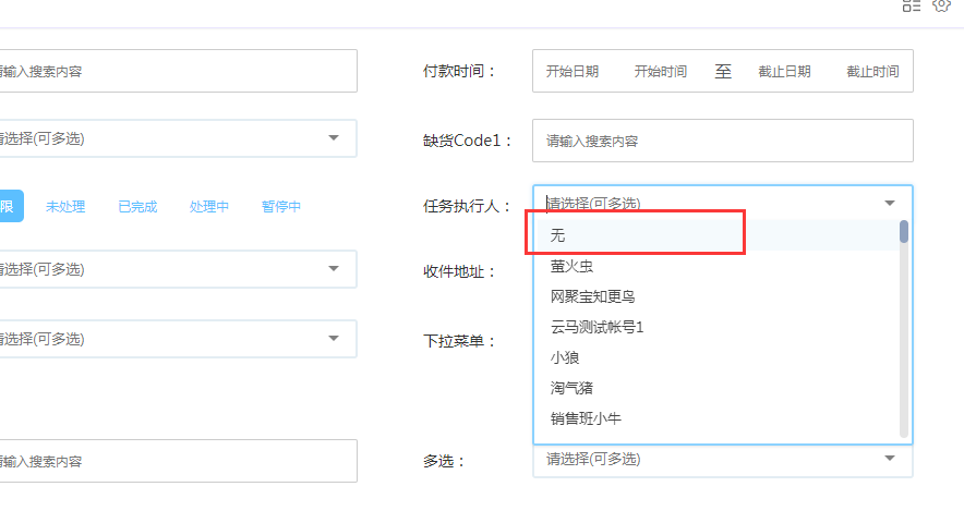 任务执行人筛选条件,增加执行人为空的条件搜索