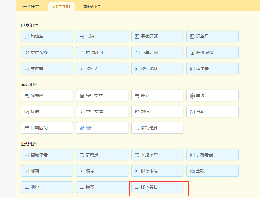 添加线下类目组件后,在评价标签树自定义 创建的类目,均可出现在群组内,可给相应的商品选择对用的类目
