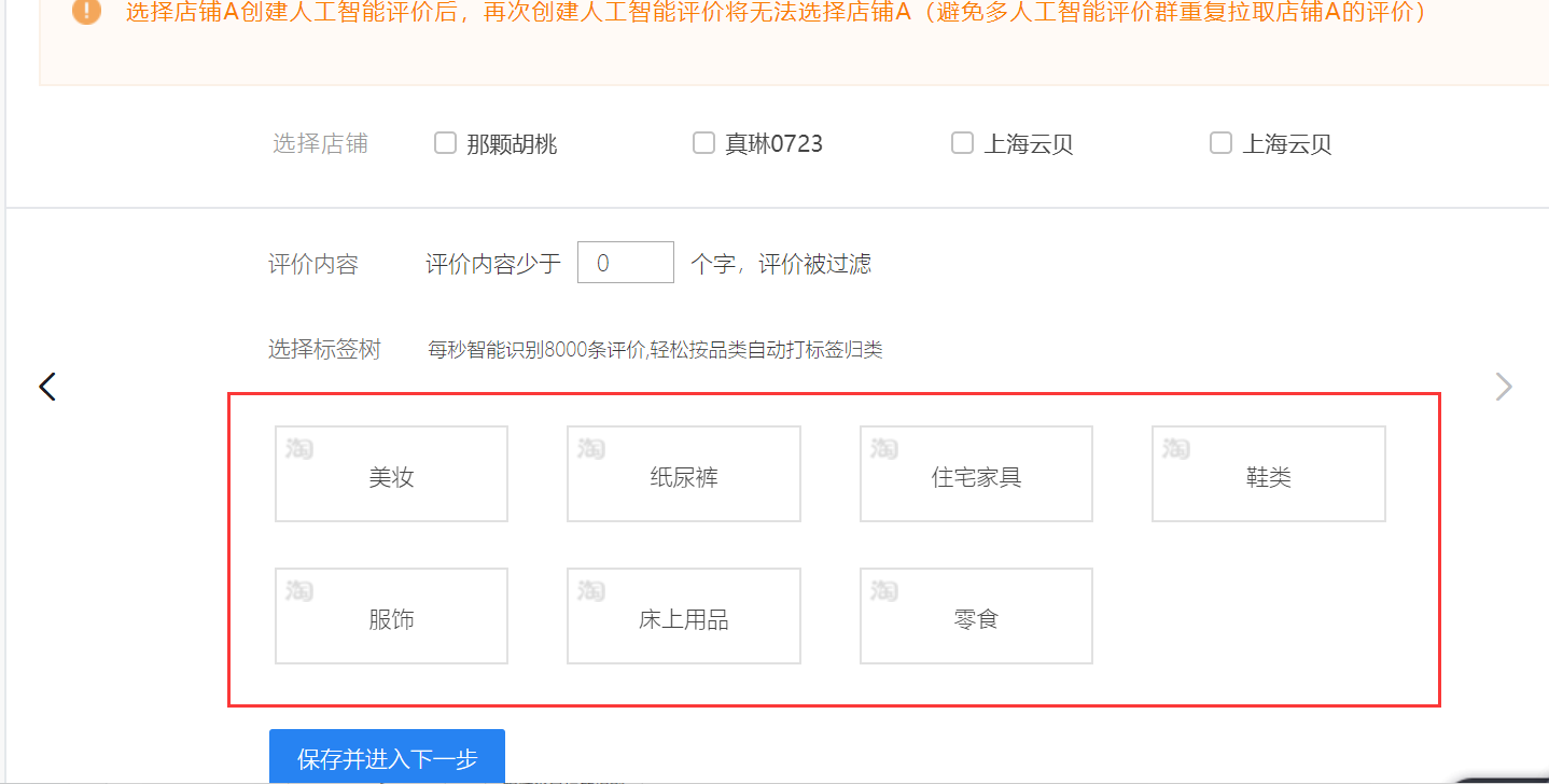 点击进入应用即创建群组,同时新增7个品类的标签树,创建群组过程中即可选择所需要绑定的标签树