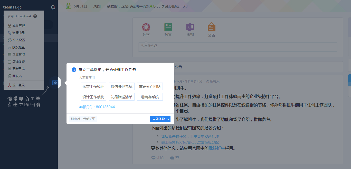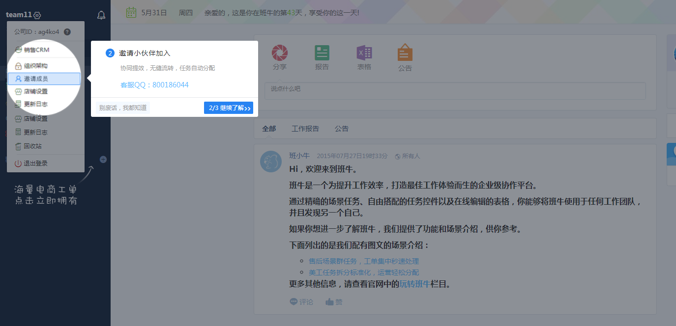 用户注册以后,首次登录班牛,显示新手引导,让用户快速的熟悉班牛的核心功能