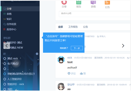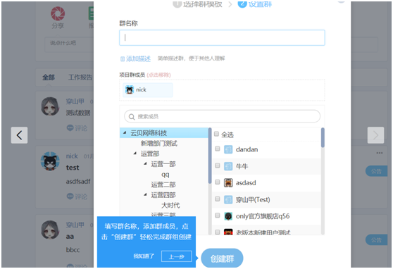 新用户首次进入系统,在没有群组状态下,会出现新手系统引导