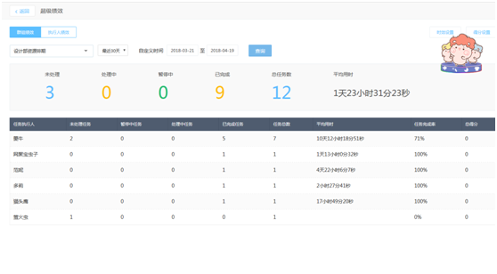 系统自动拉取每个群组或者每个客服的任务完成情况(任务时效、任务完成率、任务得分等)