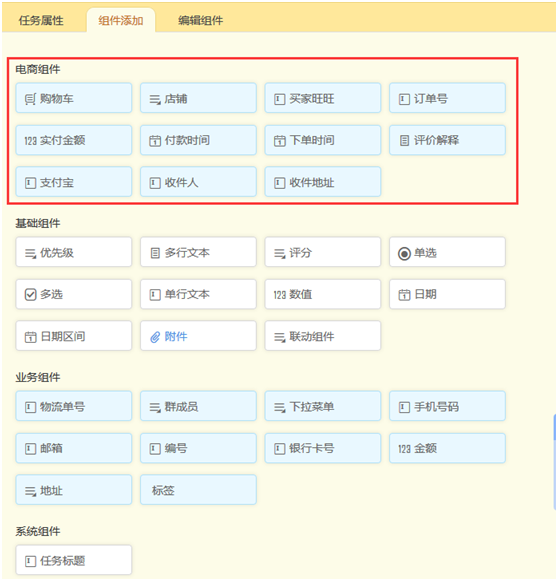 批量导入订单号时,可拉取除了购物车和评价解释组件外的其他所有电商组件数据