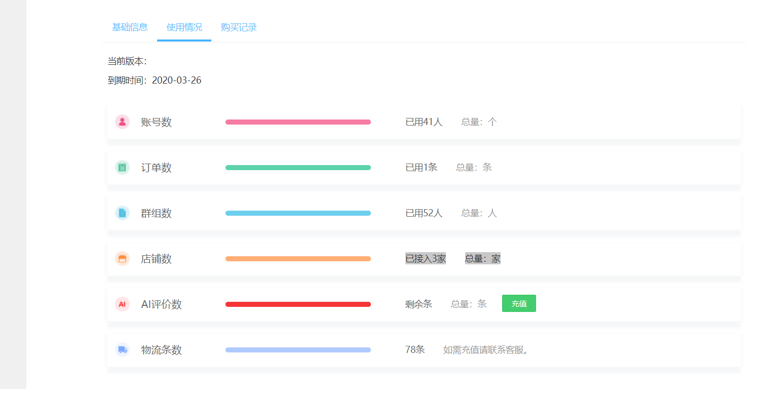 3、新增用户情况管理,企业版支持充值AI评价数。