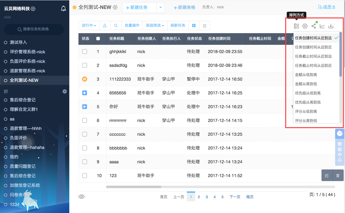 2、新增工单自定义排序,支持数值、时间组件